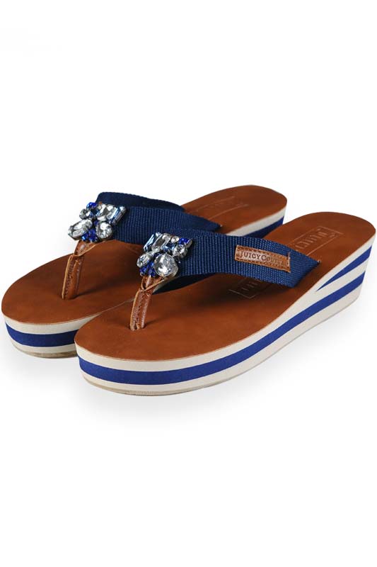 Juicy Couture Wedges Flip Flops Brown Navy