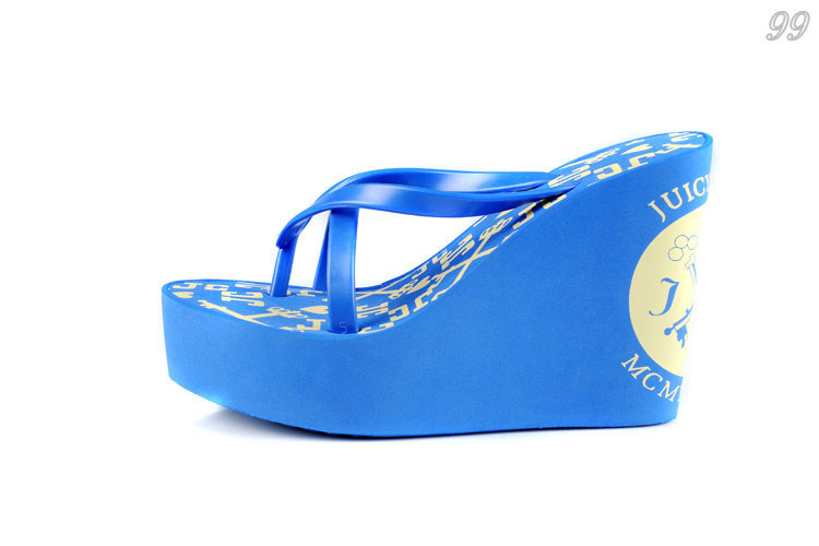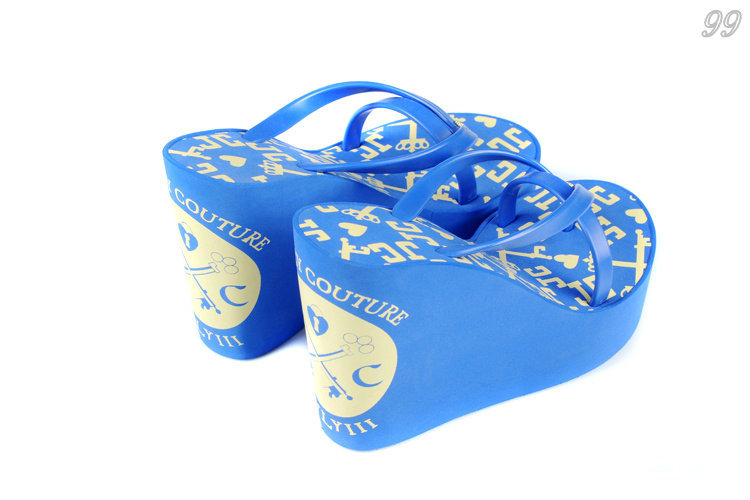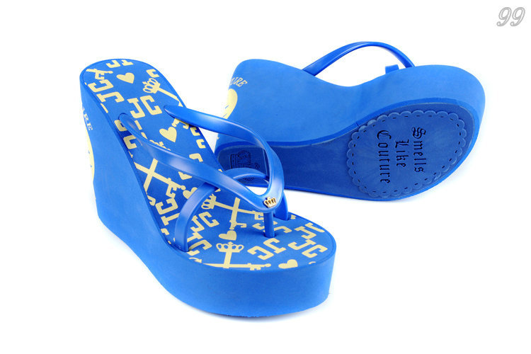 Juicy Couture High Wedges Flip Flops White Blue
