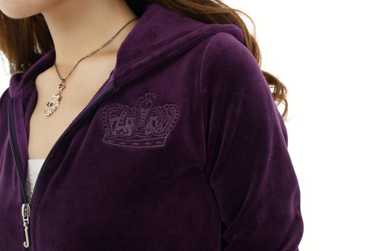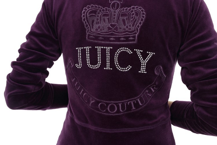 Make sure your off-duty look is on point with a signature velour jacket featuring a heavy dose of metallic flair. An array of metallic embellishments in a chic, quilted pattern on the back surrounds the Juicy logo which is also heavily adorned with bling. Pair it with the Juicy Pearl Bootcut Pant for an ensemble worth living in.