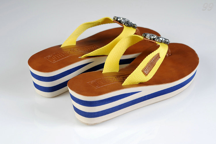 Juicy Couture Wedges Flip Flops Brown Yellow
